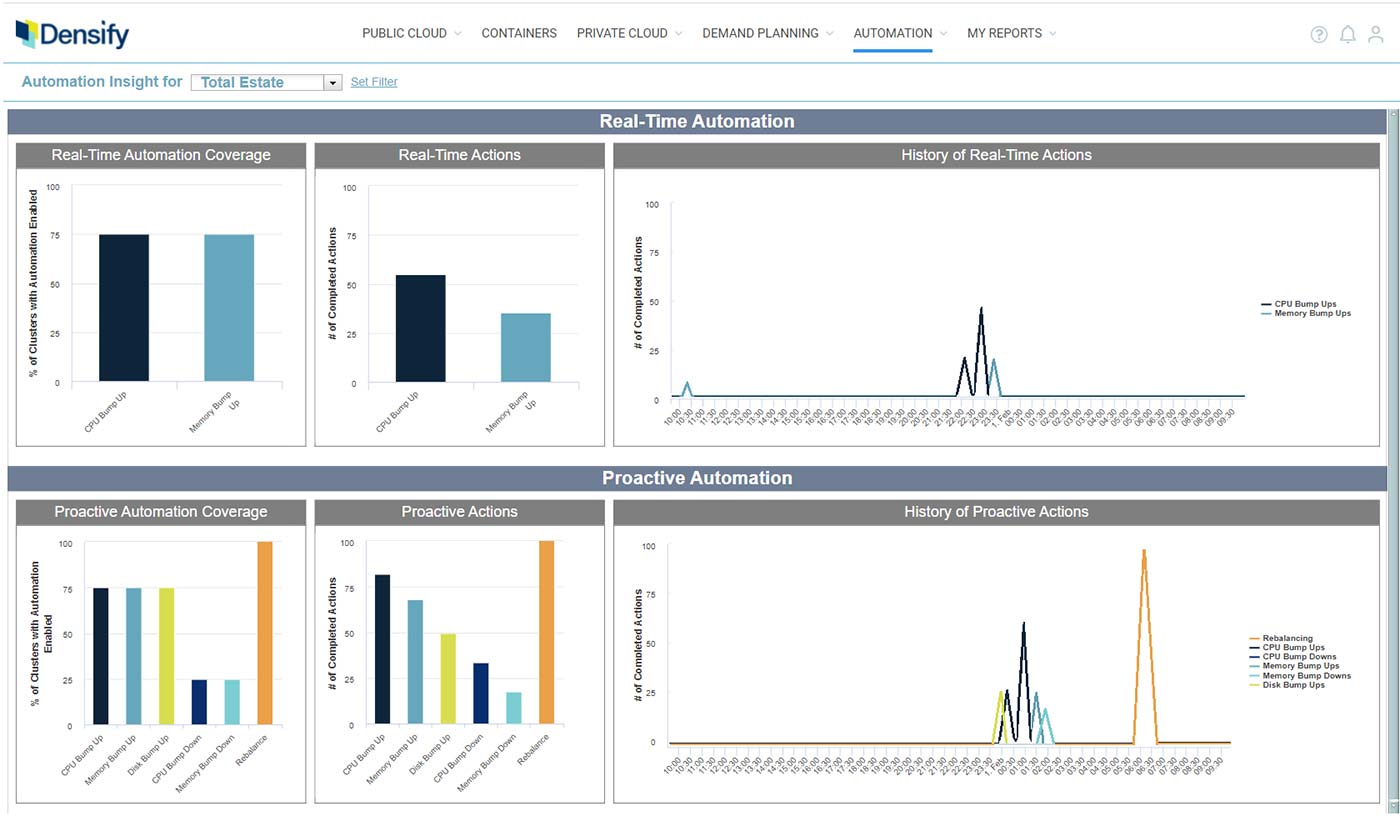 Densify provides organizations with the best of both worlds—automated proactive optimization to avoid resource contention while increasing efficiency and real-time response for operational anomalies: