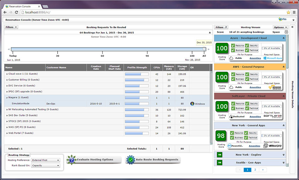 Densify provides automated, API-driven workload routing that uses detailed capacity analysis, fit-for-purpose analysis, and cost ranking to make an intelligent placement decision. No end-user decisions or manual intervention required.