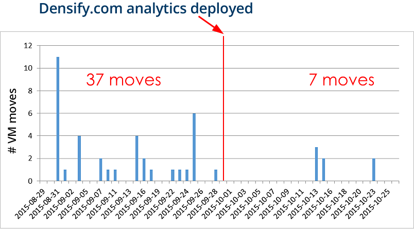 Densify gives you predictive analysis that considers time-of-day patterns to detect contention risk, and proactively moves VMs in anticipation of upcoming loads—resulting in an 80% reduction of VM movement during business hours.
